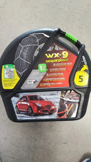 Coppia di catene da neve WX-9, maglia compatta da 9 mm. - Taglia 5. - Montaggio facile e veloce. - Prodotto di alta qualità. - Certificazione TUV GS.