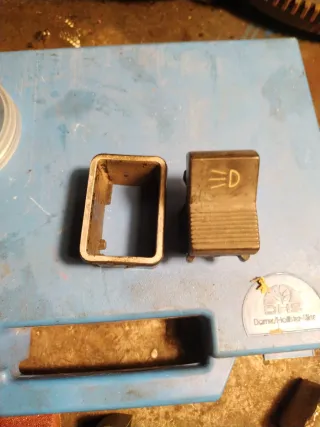 Interruttore luci e relativo supporto per Fiat 124. - Componente per il cruscotto. - Simbolo luci inciso.