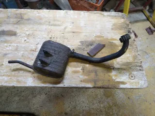 Marmitta di scarico per Garelli VIP e GULP degli anni '80. Sporco da lavare, ma non intasato il ciclomotore tirava benissimo, presenta nel collettore un colpo.