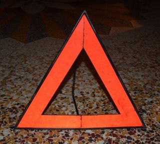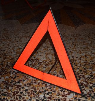 Triangolo di emergenza per auto d'epoca, un classico accessorio per la sicurezza stradale. - Colore arancione riflettente. - Struttura robusta.