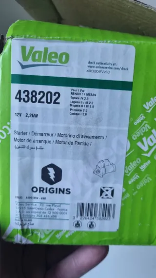 Motorino di avviamento Valeo, codice 438202. - Potenza: 12V 2,2kW - Compatibile con Renault e Nissan - Modelli: Espace IV 2.0, Laguna II/III 2.0, Megane II/III 2.0, Primastar 2.0, Qashqai 1.0 - Prodotto in Polonia