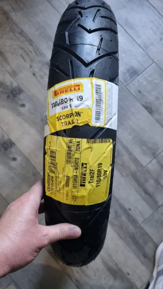 Pneumatico Pirelli Scorpion Trail per moto. - Misura: 110/80 R19 - Indice di carico/velocità: 59V - Modello: Scorpion Trail II - Marca: Pirelli