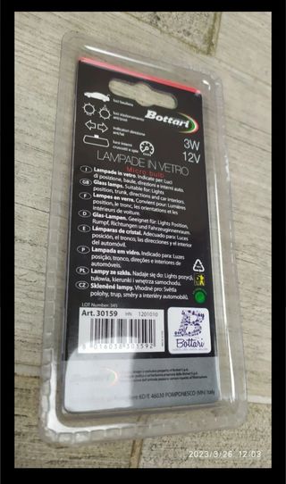 Vendo due lampadine auto T10 Bottari, nuove. Sono perfette per interni ed indicatori. - Marca: Bottari - Modello: T10 - Potenza: 3W - Voltaggio: 12V - Numero di pezzi: 2