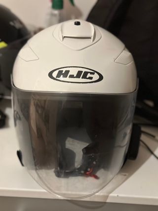 Vendo casco HJC, taglia XL, completo di interfono. - Colore bianco. - Visiera trasparente. - Sistema di aggancio rapido.