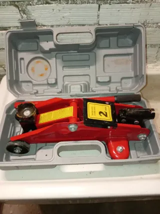 Cric idraulico per auto con capacità di sollevamento fino a 2 tonnellate. Ideale per lavori di manutenzione. - Colore rosso. - Include valigetta per il trasporto.