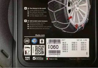 Set di catene da neve Thule CK-7, misura 060. - Modello CK-7. - Misura 060. - Marca Thule. - Incluse istruzioni e custodia.
