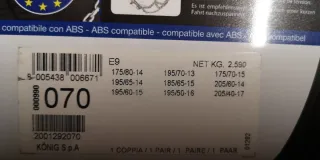 Catene da neve Konig E9, modello 070.Mai usate - Spessore 9 mm. - Omologazione E9. - Made in Europe.