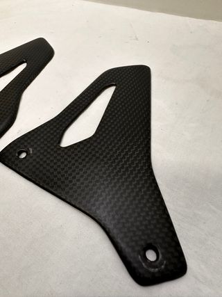 Coppia di paratacchi per pedane in carbonio. - Materiale: fibra di carbonio. - Design specifico per Ducati Monster 1200/S/R