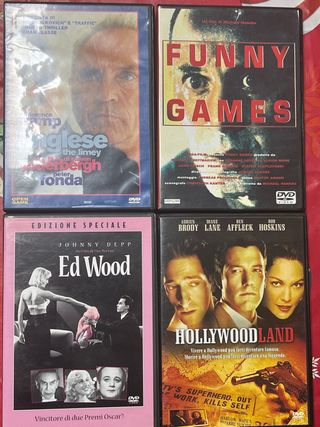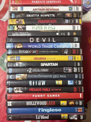 Vendo lotto di 19 DVD originali contenenti film di vario genere. Parenti Serpenti, Il Mondo di Arthur Newman, Identità Sospette, Parker, Fratelli in Erba, Al Pacino Simone, Devil, World Trade Center, Boogeyman 2, Nicotina, Spartan, 2 Livello del Terrore, L'Ultimo Dominatore dell'Aria, Below, Presagio Finale First Snow, Funny Games, Hollywoodland, L'Inglese, Ed Wood.