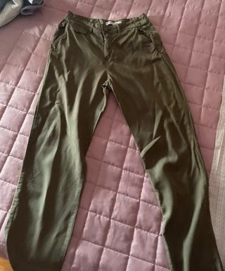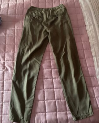 Bellissimi pantaloni Zara, colore verde oliva, taglia XS (34/6). Sono in ottimo stato e perfetti per la primavera. - modello a sigaretta - tessuto leggero e fluido - chiusura con bottone e zip