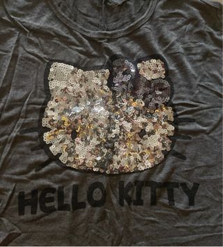 Bellissima canotta Oysho grigia con applicazione di paillettes raffigurante Hello Kitty. - Perfetta per la primavera/estate. - Ottime condizioni. - Modello con spalline sottili.Taglia 38 standard(5-ch etichetta oysho)