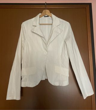 Bellissimo blazer bianco del marchio Lexrose, taglia L (40/12)-46 ita.È un capo elegante e versatile, perfetto per diverse occasioni. Qualche alone sul collo,da eliminare con lavaggio in candeggina. - Modello classico con un solo bottone - Tessuto leggero e fresco - Dettagli impeccabili
