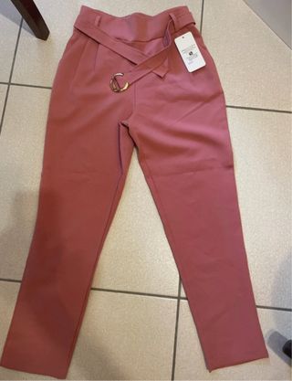 Pantaloni eleganti in un bel color rosa. - Cintura con fibbia dorata. - Vita alta con passanti. - Tessuto morbido e confortevole.