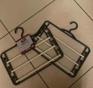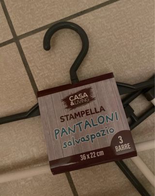 Set di 3 stampelle per pantaloni, ideali per ottimizzare lo spazio nell'armadio. - Design salvaspazio. - Struttura resistente.