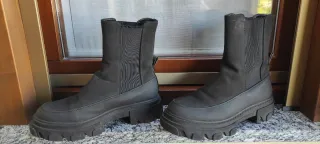 Stivaletti biker neri in ecopelle, modello Chelsea.impermeabili - Taglia 38. - Suola carrarmato. Usati poche volte, vendo per cambio taglia