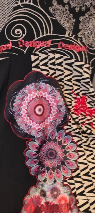 Vestito Desigual con un design unico e colorato. - Maniche lunghe. - Scollo a V. - Fantasia patchwork con vari motivi. Prezzo trattabile