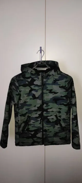 Giubbino con stampa mimetica per bambini. Tg M Tessuto tecnico - Cappuccio integrato. - Chiusura frontale con zip. - Tasche laterali con zip.