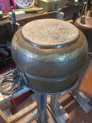 Pentola in rame con manici. - Materiale: metallo. - Colore: marrone, oro. usabili come portavasi