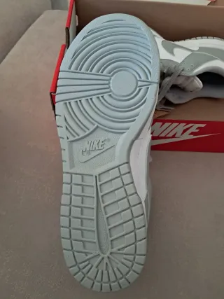 Scarpe Nike Dunk Low in color block grigio e bianco. Vendo per regalo sbagliato MAI MESSE - Tomaia in pelle. - Inserti in pelle. - Swoosh Nike laterale.
