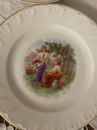 Elegante set di 8 piatti in porcellana di Boemia, perfetti per arricchire la tua tavola. - Ogni piatto presenta una delicata decorazione. - Bordo con finitura dorata.