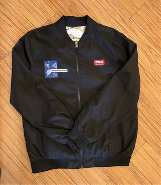 Giacca Fila per ragazzo, perfetta per la mezza stagione. - Colore nero. - Logo Fila sul petto. - Patch con grafiche sportive sul davanti. - Fodera interna con stampa a tema sportivo.