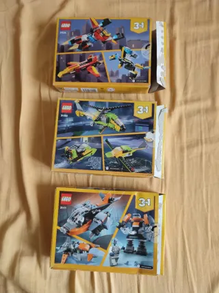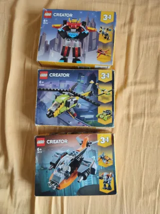 Set lego creator 3 in 2 nuovi Lego 31092 avventure in elicottero Lego 31111 Cyber-drone 113 pezzi Lego 31124 super robot Tutte le scatole sono aperte ma con sacchettini sigillati come da foto