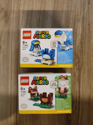Due set LEGO Super Mario Power-Up Pack. - Set 71384: Penguin Mario. - Set 71385: Tanooki Mario. - LEGO Mario non incluso.