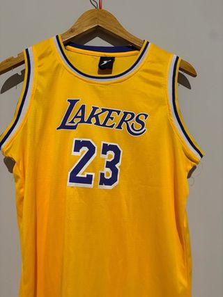 Canotta da basket dei Lakers, numero 23, indossata da Lebron James. Perfetta per i giovani tifosi. - Colore giallo vivace. - Logo Lakers e numero 23. - Taglia 2XL.