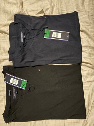 Set di due magliette Tommy Hilfiger per ragazzo, ancora con etichetta. - Colore blu navy - Colore nero - Logo Tommy Hilfiger sul petto - Cotone organico