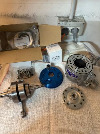 vendo maxi kit fa2st 80 derbi per iniziare un altro progetto molto piu grosso. il kit e molto potente montato per 5 ore, non e stato finito il rodaggio. cedo con guarnizioni e pistone nuovo, il cilindro è perfetto. I cuscinetti dell albero motore devono essere sostituiti, perché scaldando il carter per togliere l’albero il teflon si e’ mangiato. il kit comprende -Fa2st 80 il cilindro e stato pulito internamente dalle micro impurità -pistone fa2st nuovo -guarnizioni nuove -albero motore Fa2st c44,9 la scritta sul cilindro puo essere tolta con del diluente, perche’ si tratta di pennarello.