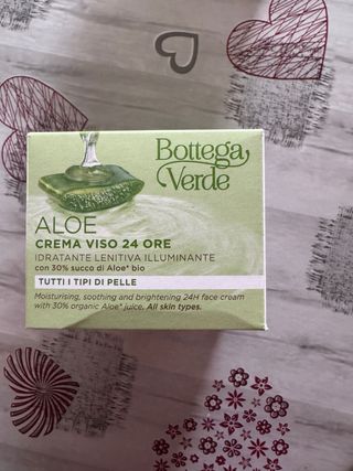 Crema viso idratante lenitiva illuminante Bottega Verde. - Con 30% succo di Aloe bio. - Adatta a tutti i tipi di pelle. - Formato da 50ml.