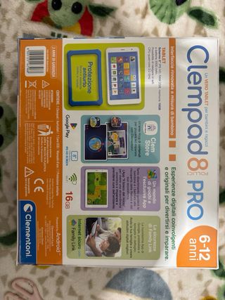 Tablet Clementoni Clempad 8 PRO di colore blu, pensata per bambini e ragazzi. - Schermo IPS HD da 8 pollici. - Memoria interna da 16GB. - Connessione Wi-Fi. - Auricolari inclusi.