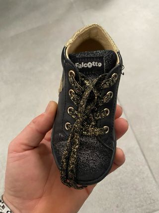 Scarpe da bambina marca Falcotto, modello con glitter. - Colore nero con dettagli oro. - Chiusura con lacci. - Suola in gomma.