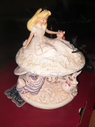 Statua Disney Traditions ispirata ad Alice nel Paese delle Meraviglie. Raffigura Alice con il Bianconiglio e lo Stregatto. - Personaggi dettagliati in resina. - Finitura dipinta a mano. - Design unico di Jim Shore. Piccolo difetto guarda le foto.. scatola della traditions ma non e l originale