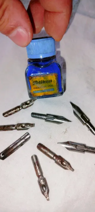 Bottiglietta di inchiostro Pelikan per pennini, ideale per collezionisti o appassionati di scrittura vintage. - Colore blu. - Etichetta Drawing Ink visibile.vefere bene le condizioni in foto
