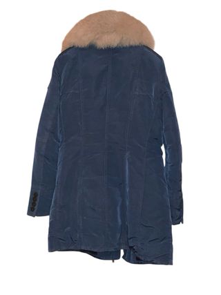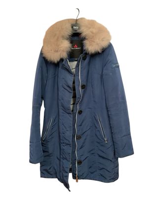 Elegante giacca Peuterey di colore blu, perfetta per le giornate più fredde. ✶ Bordato in pelliccia vera di volpe grigia; ✶ Chiusura centrale con zip e bottoni; ✶ Tasche laterali con zip.