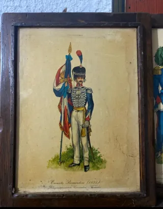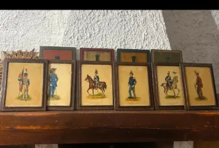 Bellissimo set di sei quadretti con illustrazioni di soldati in uniforme storica. - Illustrazioni dettagliate di figure militari. - Cornici in legno scuro. - Ideali per collezionisti o appassionati di storia.