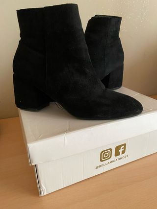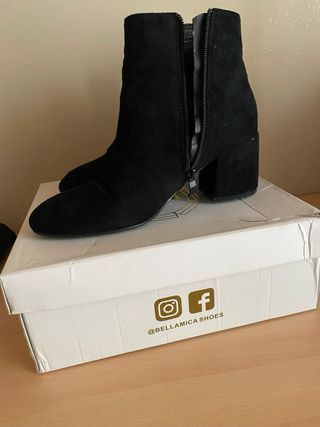 Eleganti tronchetti neri da donna, usati pochissime volte. Perfetti per completare ogni outfit. - Materiale scamosciato. - Tacco largo e comodo. - Design alla moda. -Con scatola originale .