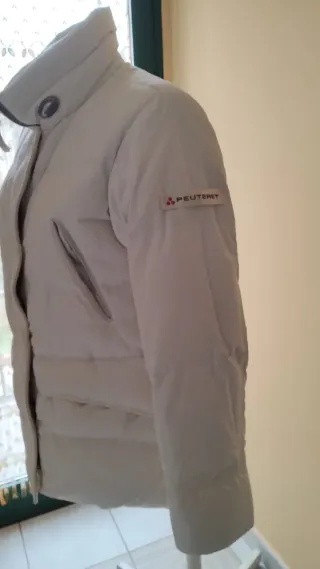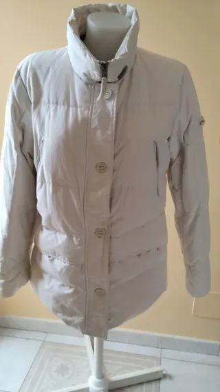 Giubbotto da donna Peuterey, vera piuma d'oca. La taglia è una 46 italiana corrispondente a XL italiana con le seguenti misure: Spalle cm. 43, torace cm. 53 vita cm. 52, lunghezza manica cm. 62 e lunghezza giubbotto cm. 74 circa. - Colore bianco versatile. - Design imbottito per calore e comfort. - Chiusura frontale con zip e bottoni. - Collo alto per una maggiore protezione.