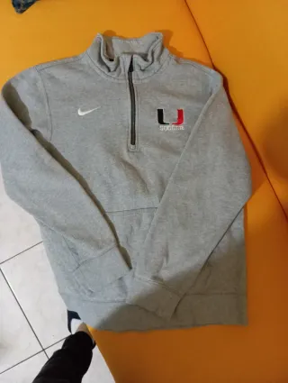 Felpa Nike grigia con zip corta sul collo. Presenta un logo U Soccer ricamato sul petto, indossato solo una volta, in perfettissime condizioni - Logo Nike sul lato sinistro. - Zip metallica. - Tasca a marsupio.