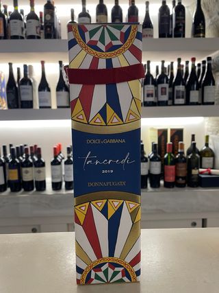 Bottiglia di vino Tancredi Donnafugata edizione Dolce & Gabbana del 2019. - Etichetta con design esclusivo. - Annata 2019. EDIZIONE LIMITATA