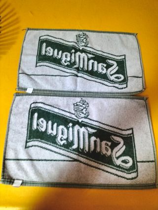 Lavetta da collezione avente il logo della birra spagnola San Miguel. Spugna di cotone bianco su fondo verde scuro. Abbastanza usata con evidenti segni di usura. Condizioni accettabili.