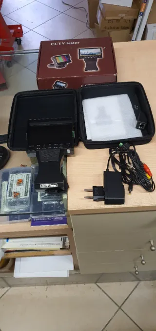 Tester per telecamere CCTV, utile per la verifica e la manutenzione di sistemi di sorveglianza. - Display integrato. - Alimentazione tramite batteria FIAMM FG10121 inclusa.