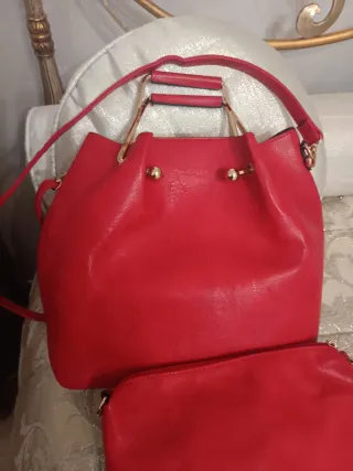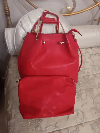 Set composto da borsa e pochette abbinata, entrambe con tracolla. - Borsa capiente con manici superiori. - Pochette coordinata con chiusura a zip. - Dettagli metallici dorati.