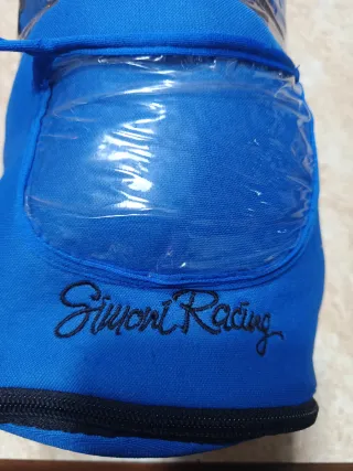 Coprisedili universali per auto in tessuto blu.e neri con Margherita bianca ... - Design moderno e pratico. - Adatti a diversi tipi di sedili. - Marchio Simoni Racing visibile.