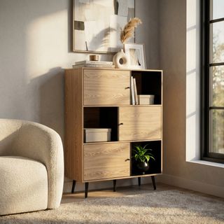Solo arredo di qualità e selezionato con cura. Dal nostro magazzino, ogni prodotto è imballato e spedito con la massima attenzione e sicurezza. 📌 Dettagli Prodotto: Dimensioni: cm 82 x 39,5 x 123 h Design moderno industrial Realizzata in legno con dettagli in metallo Dotata di 6 grandi cassetti e un anta scorrevole Minima manutenzione richiesta Hai bisogno di una soluzione elegante e funzionale per esporre i tuoi oggetti più preziosi? Beh, è qui per te! Materiale: Legno Materiale 2: Metallo Colore: Marrone Lunghezza: 82 cm Larghezza: 39 cm Altezza: 123 cm