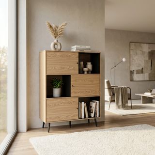 Solo arredo di qualità e selezionato con cura. Dal nostro magazzino, ogni prodotto è imballato e spedito con la massima attenzione e sicurezza. 📌 Dettagli Prodotto: Dimensioni: 100 x 39,5 x 135 h Design contemporaneo adattabile ad ogni ambiente Materiali premium Assemblaggio semplice ed intuitivo JEN è una credenza versatile con ante battenti e vani essenziali. Realizzata con cura e materiali di alta qualità, la sua struttura in mdf e copertura melamminica la rendono facile da pulire. Materiale: Truciolare bilaminato Colore 2: Nero Colore: Marrone Lunghezza: 100 cm Larghezza: 39 cm Altezza: 135 cm