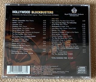 CD Hollywood Blockbusters della Royal Philharmonic Orchestra. - Temi da film classici. - Include Avatar, Titanic, Gladiator, Schindler's List, Harry Potter, Lord of the Rings, Quantum of Solace, The Da Vinci Code e molti altri. - 2 CD - Ottime condizioni