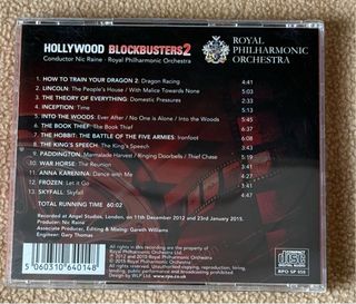CD Hollywood Blockbusters 2 della Royal Philharmonic Orchestra. - Raccolta di temi da film classici. - Include temi da The Theory of Everything, The Hobbit, Skyfall, The King's Speech, Paddington, Inception, War Horse, Lincoln, Frozen e molti altri.