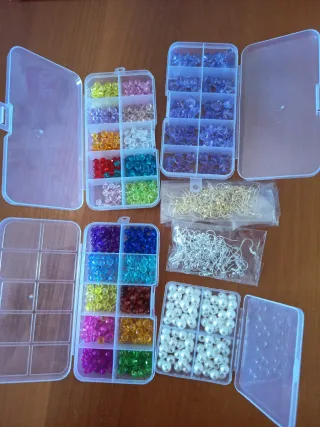 Set completo per la creazione di gioielli fai-da-te, ideale per dare libero sfogo alla creatività. - Include una vasta gamma di perline acriliche colorate e trasparenti. - Contiene anche componenti metallici per orecchini.